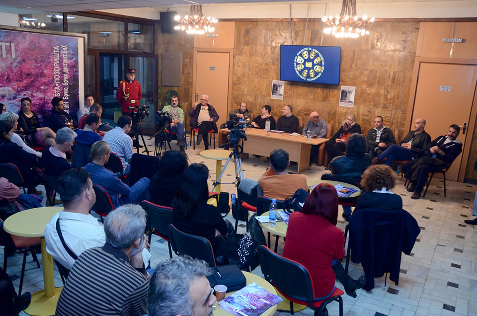 Na okruglom stolu održanom nakon predstave, kojim je moderirao teatarski kritičar Mladen Bićanić, govorilo se o predstavi i načinu na koji ona odgovara na temu ovogodišnjih Susreta: 'Potraga za istinom'. Dok jato ždralova leti iznad jednog neimenovanog grada u BiH u kojem je bio rat i njegovi ožiljci još su svježi, pratimo sudbine nekoliko likova. Oni su usamljeni, nesretni, 'zapleteni' u plastične bijele vrećice koje plove gradom. U ovoj su se predstavi spojile čudne energije tri teatra, bio je jedan od komentara publike okruglog stola, udružili su snage i stvorili jedan teatarski biser. Selektor Susreta Vlado Kerošević je na okruglom stolu rekao da predstava 'Mrtve ribe plivaju na leđima' zatvorila konkurencijski program Susreta jer smatra 'da je to predstava koja govori o minutu pred kolektivnom sahranom svih nas'.