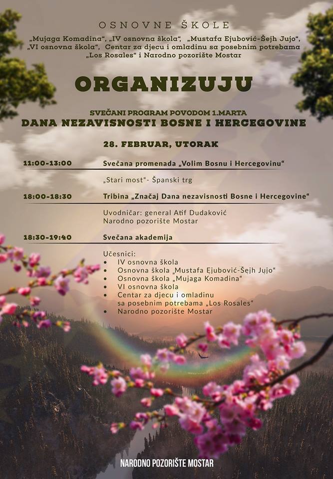 Svečanim kulturno-umjetničkim programom i tribinom pod nazivom "Značaj Dana nezavisnosti Bosne i Hercegovine" u utorak navečer je u Narodnom pozorištu Mostar nastavljen program obilježavanja Dana nezavisnosti BiH.