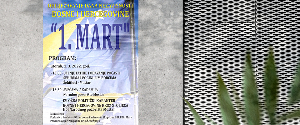 Centralna manifestacija obilježavanja Dana Nezavisnosti Bosne i Hercegovine u Hercegovačko-neretvanskom kantonu održat će se u Mostaru 1. marta 2022. godine.